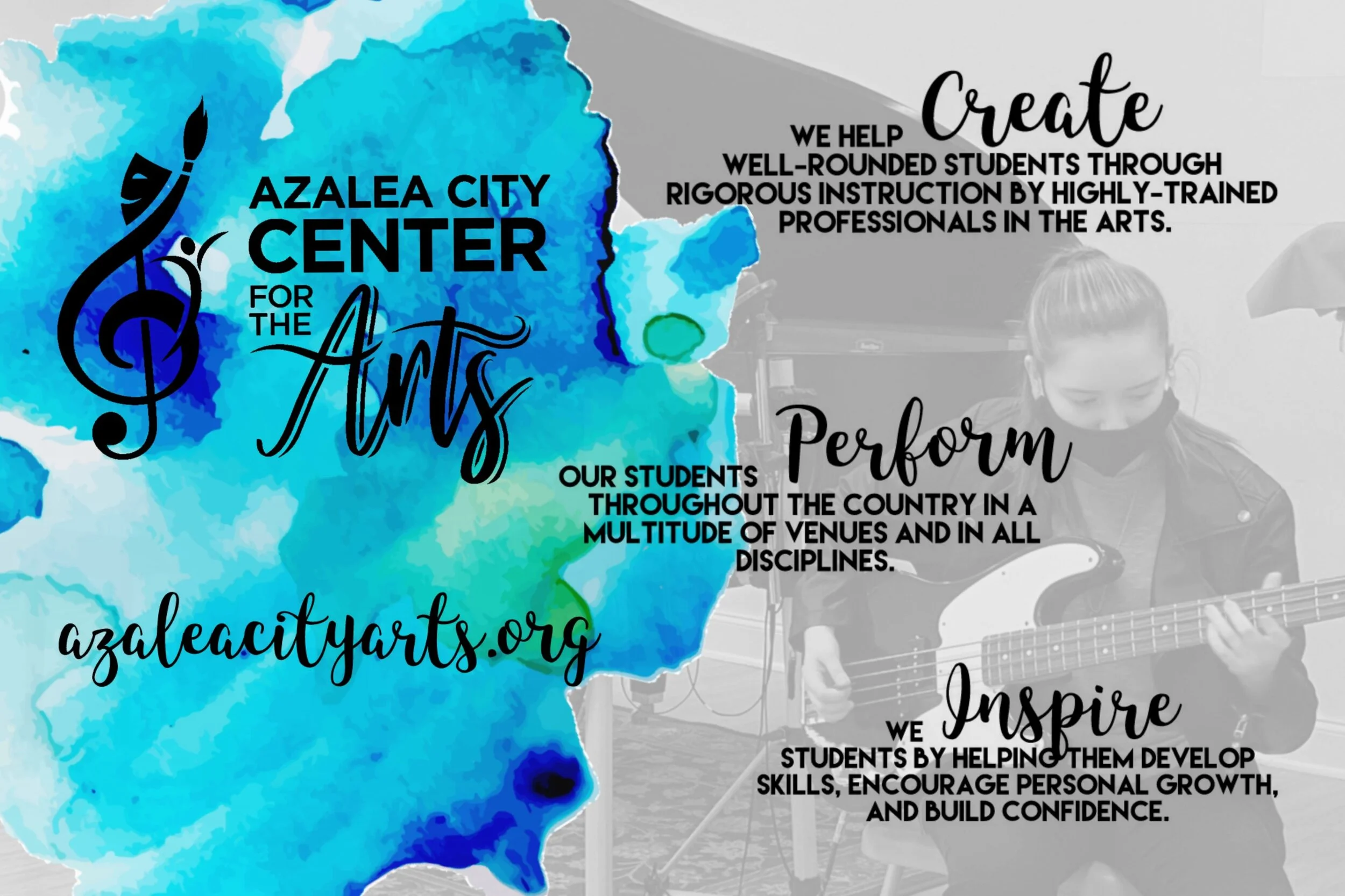 The Azalea City Center for the Arts is a nonprofit organization in Mobile, Alabama, with a mission to provide opportunities for children and adults to explore the world of artistic expression through quality educational programs, recitals, and performance opportunities that enhance self confidence, encourage personal growth, and strengthen academic and artistic skills.